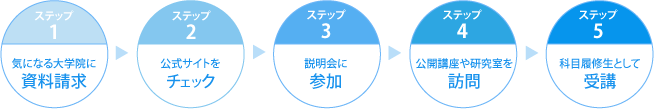 希望する教授の授業を受ける機会がないか、志望大学院の科目等履修制度や、公開講座の受講生募集のお知らせなどを日頃からチェックしておくことをお薦めします。